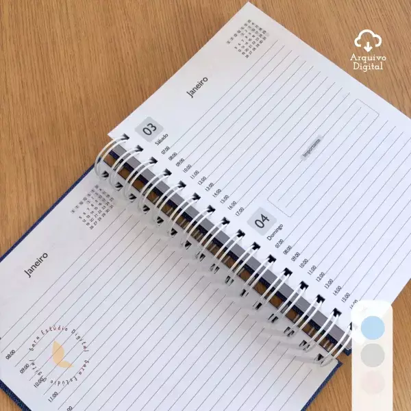 1 dia por página com sáb e dom juntos (com e sem horário) – 378 páginas (incluso divisórias e planejamento mensal)