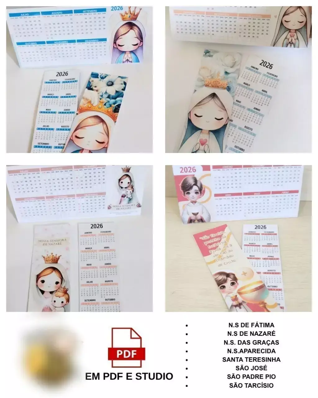 COMBO Especial – 8 Calendários 2026 Católicos para Imprimir | PDF + Studio (Silhouette)